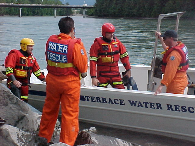 There are many great vantage points to view the wild, racing ducks . . . And the weather cooperated, making it a great family outing. Terrace Water Rescue prepares in advance recover the bobbing yellow racers.